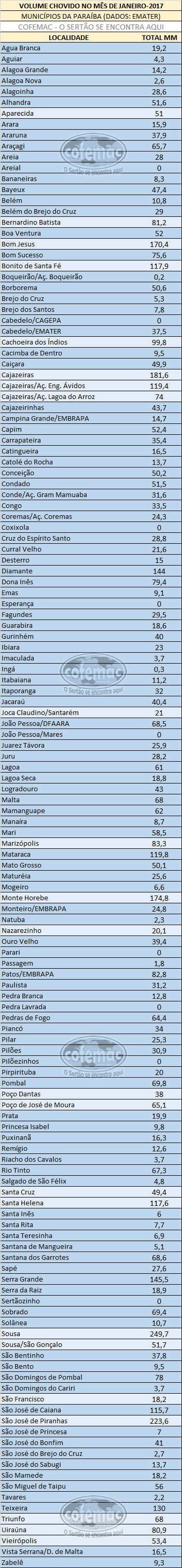VEJA OS NÚMEROS DAS CHUVAS EM JANEIRO-2017