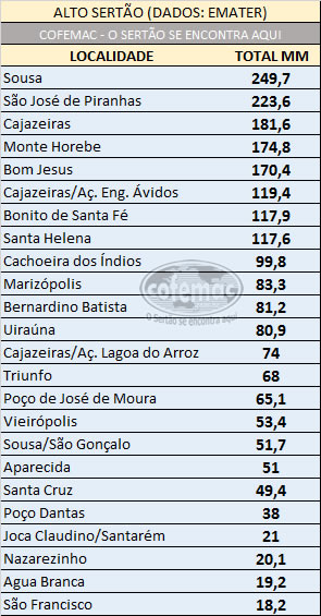 CIDADES QUE MAIS CHOVERAM NA REGIÃO DE UIRAÚNA/ALTO SERTÃO: