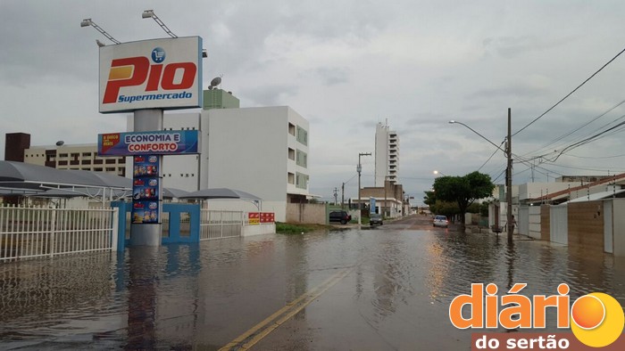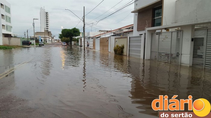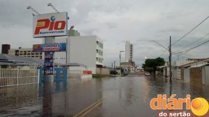 Na sede do município de Sousa choveu, 84 milímetros, segundo dados da Emater, o suficiente para deixar várias ruas do centro da cidade totalmente alagadas.