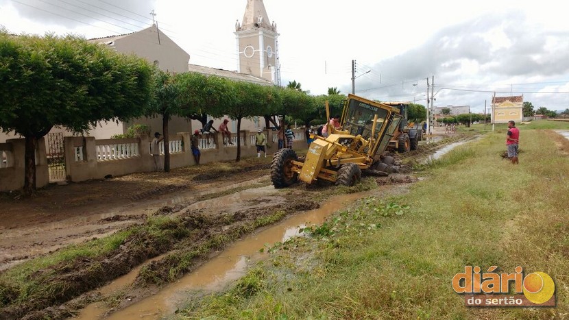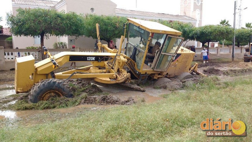 Com a forte chuva, até as máquinas pesadas da prefeitura ficaram atoladas na Rua Luiz Quezado, vizinho a capela de São Francisco.