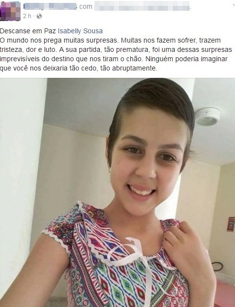Nas redes sociais familiares e amigos da adolescente dizem não acreditar na triste notícia e deixam votos de solidariedade família, além de mensagens de despedida a Isabelly.