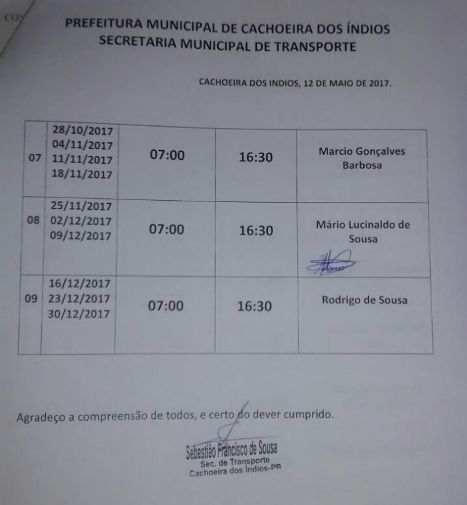 De acordo com o denunciante, que pediu sigilo na identidade temendo represálias, o secretário, mais conhecido na cidade por “Branco”, emitiu um ofício com uma escala para os motorista, que terão que trabalhar cerca de quatro sábados cada um deles.