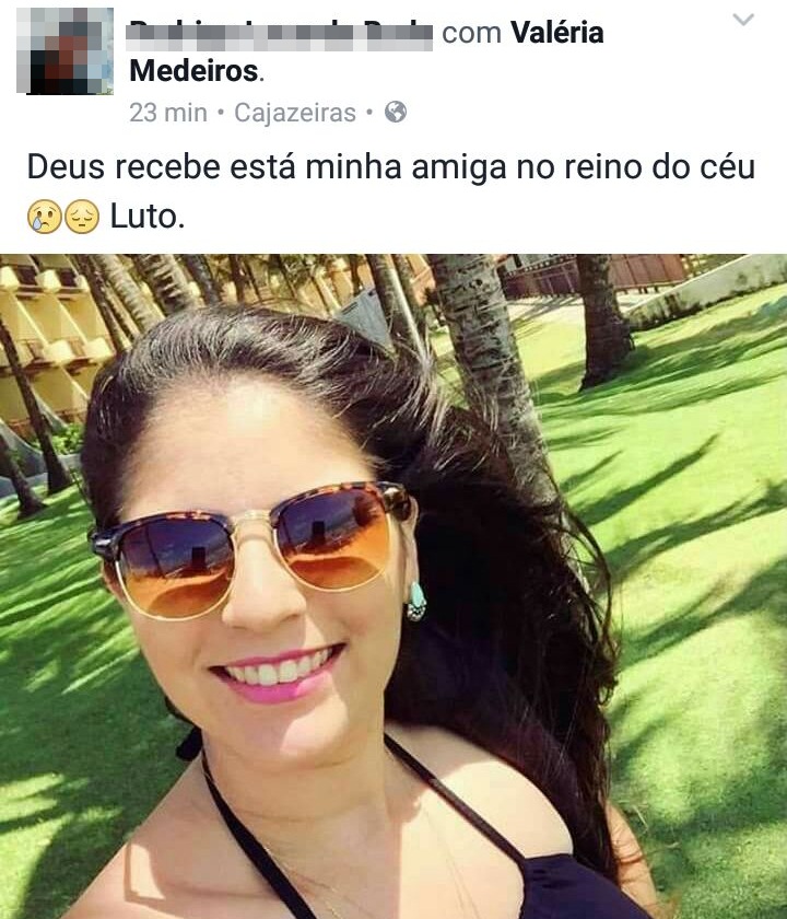 Um amigo de Valéria publicou no seu perfil uma recomendação a Deus pela cajazeirense.