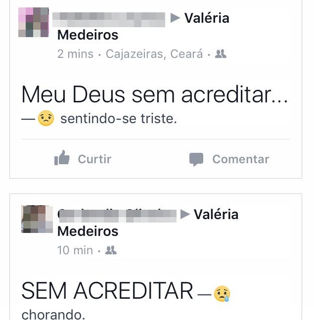 Outros disseram que estão sem acreditar na partida de Valéria Medeiros.