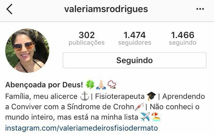 No seu perfil de uma rede social, a jovem se disse “Abençoada por Deus”, e comentou que estava se adaptando a conviver com a Síndrome de Crohn.
