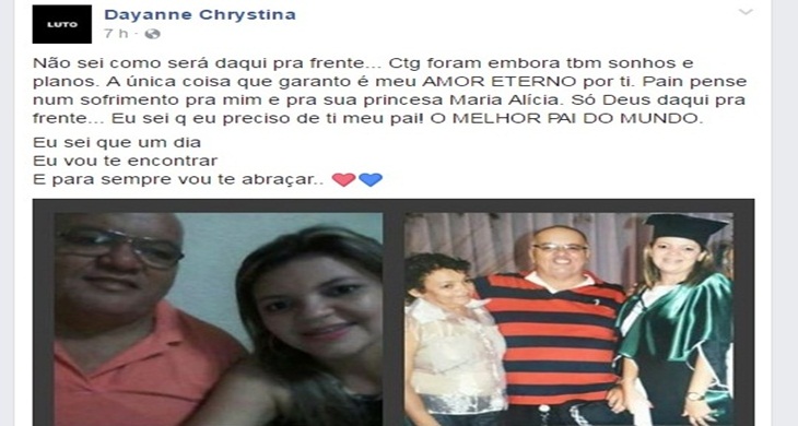 Já a filha do fotógrafo, Dayanne Chrystina fez uma declaração ao pai na rede social Facebook. Veja postagem!