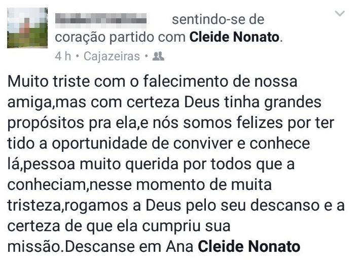 Após a divulgação da morte da jovem Ana Cleide da Silva Nonato, 32 anos, as redes sociais e aplicativos de mensagens ficaram repletos de declarações e lamentações pela partida prematura da cajazeirense.