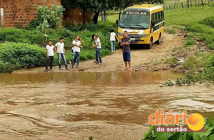 No sítio Olho D’água, a chuva encheu vários rios e a estrada ficou coberta pelas águas. O internauta Gilson da Silva, registrou o momento em que um ônibus escolar parou às margens da estrada, pois, o nível da água estava muito alto, impossibilitando a travessia com os estudantes que voltaram para casa.