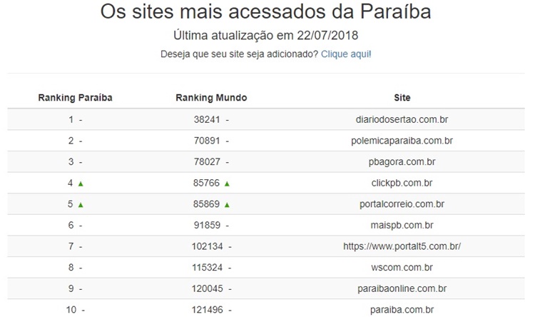 No ranking dos principais sites mais acessados, o Diário do Sertão que tem sua matriz na cidade de Cajazeiras, e filial em Sousa, é o único site do sertão a estar no top 5.