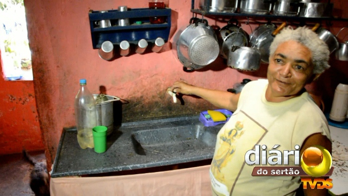 "A sorte é a caixa d'água. Se não fosse a caixa o povo já tinha morrido de sede, nem cozinhava e nem tomava banho. A gente se levanta uma hora da madrugada, três horas, e tem dia que você acorda de madrugada e não tem nada, os canos estão todos secos", relata dona Sebastiana Diniz.