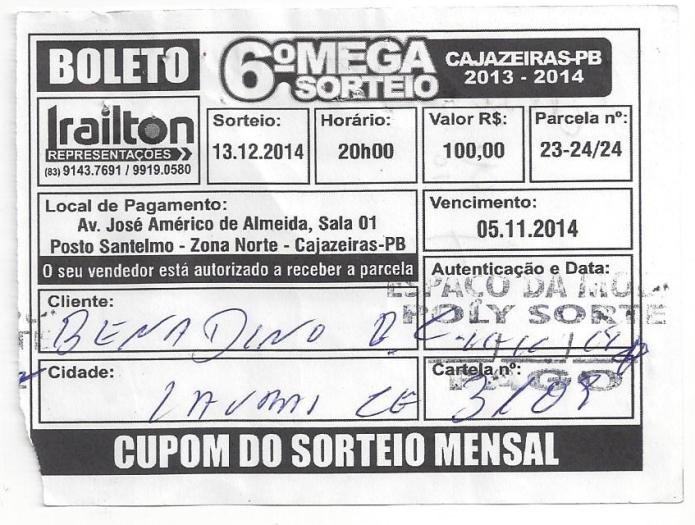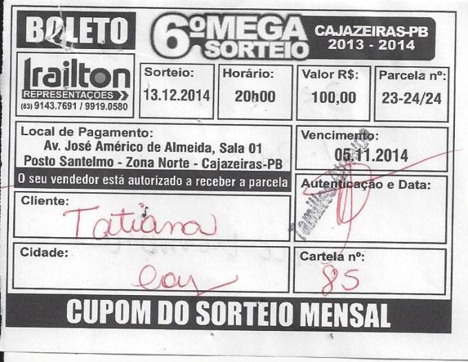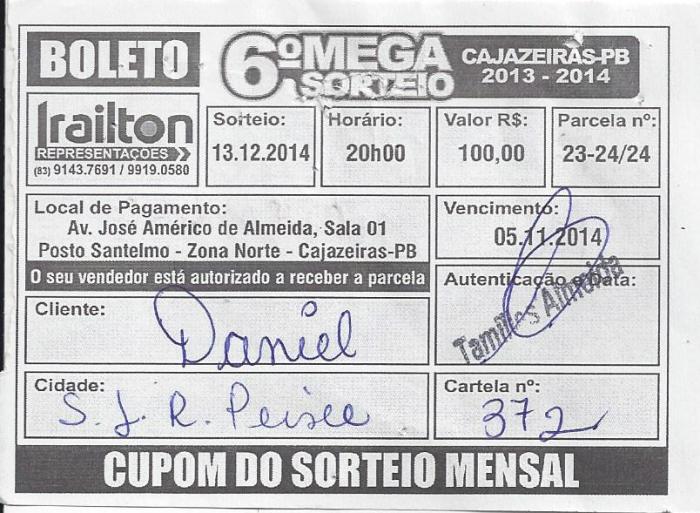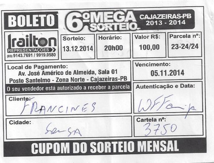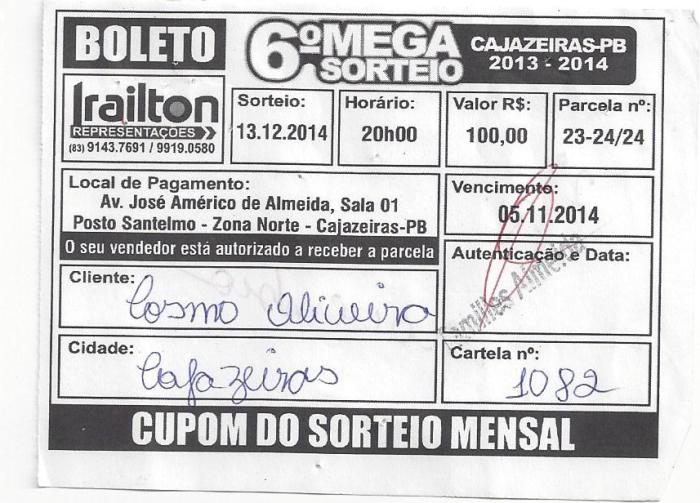 Os ganhadores do sorteio extra do 6º Mega Sorteio de Cajazeiras foram os seguintes:
