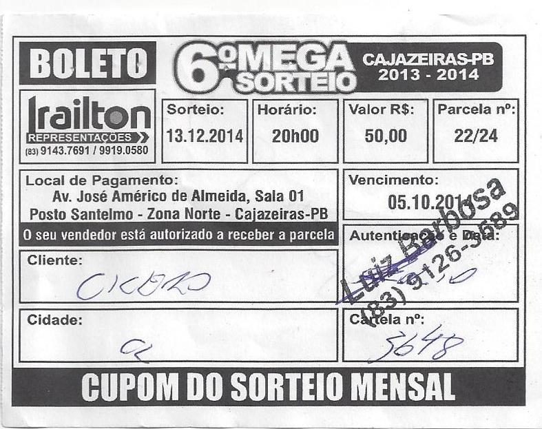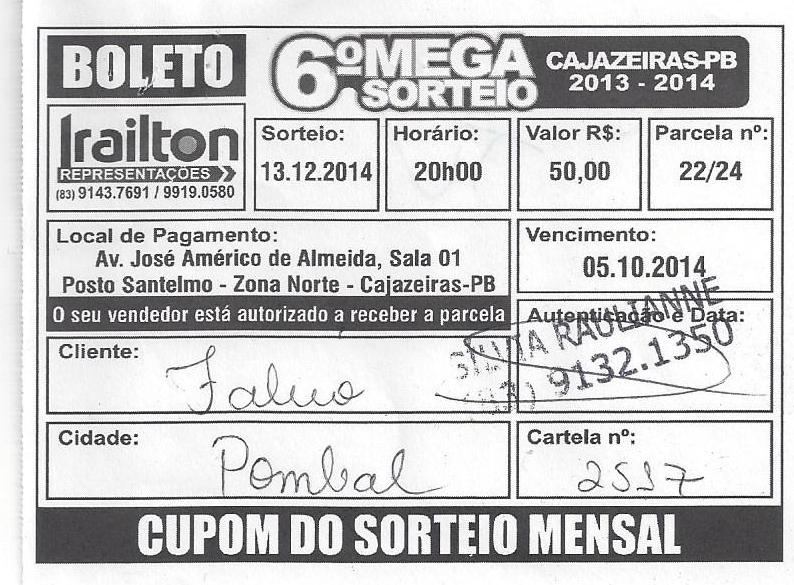 Os ganhadores do sorteio extra do 6º Mega Sorteio de Cajazeiras foram os seguintes:
