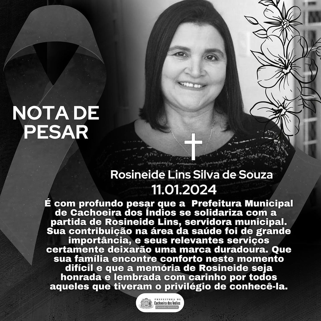 A Prefeitura Municipal de Cachoeira dos Índios emitiu uma nota de pesar lamentando a morte de Rosineide Lins e destacando sua contribuição na área da saúde