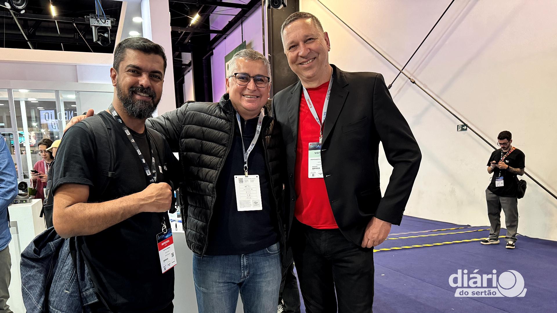 Ivan Vale, do canal Tecnico de Transmissão, ao lado do diretor do Sistema Diário, Petson Santos e jornalista e produtor, Odair Cardoso na SET EXPO 2025 em São Paulo