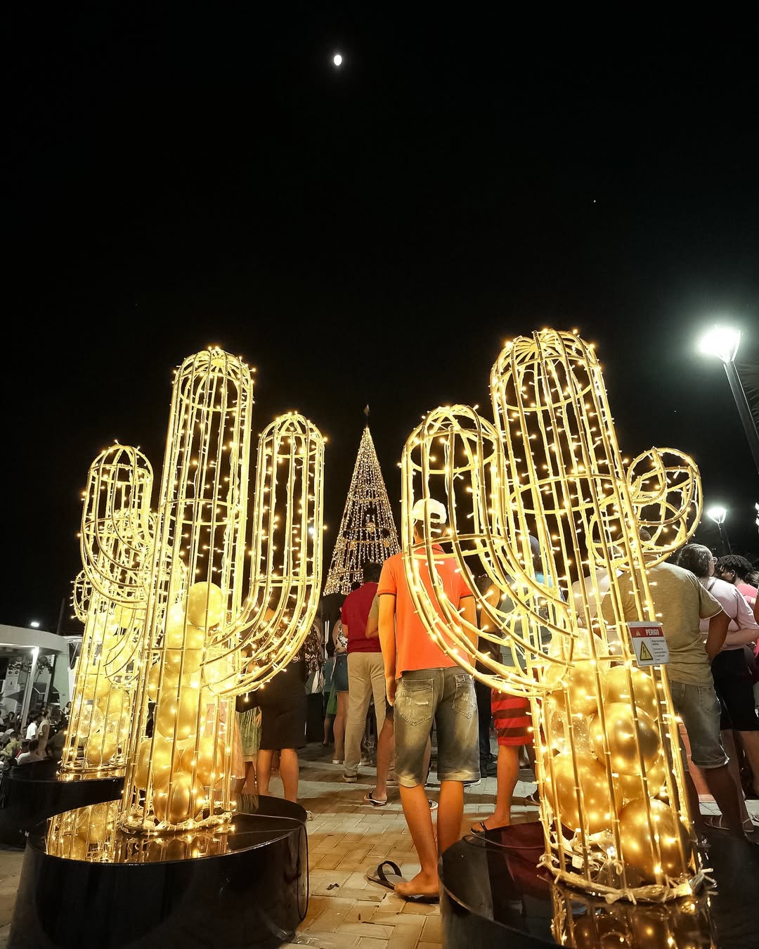 São milhares de lâmpadas de LED iluminando objetos que recriam símbolos natalinos, como árvores inspiradas em cactos, estrelas brilhantes e outras peças que exaltam a cultura sertaneja numa combinação de tradição e inovação.