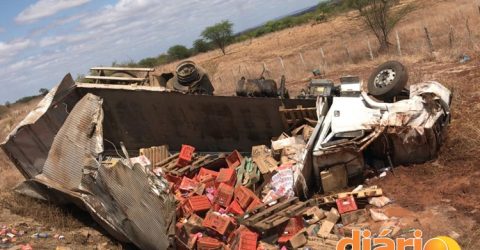 VÍDEO: Carreta carregada de material reciclável tomba na BR-230, sentido João Pessoa