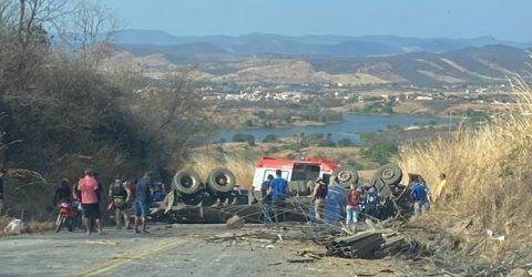 VÍDEO: Carreta tomba na Serra de Monte Horebe, deixa dois mortos e um ferido grave