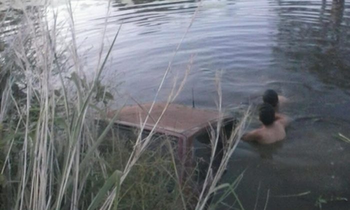 Um grupo de populares se uniu e após muito trabalho conseguiu resgatar o automóvel que ficou submerso.
