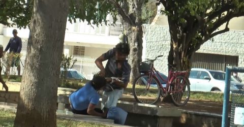 VÍDEO: Homem tenta enforcar mulher com corda e arrasta ela pelo chão em praça pública de Patos