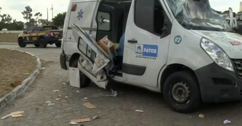VÍDEO: Ambulância de Patos capota na BR-230 na Grande João Pessoa e um passageiro fica gravemente ferido