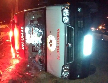 A equipe de profissionais sofreu apenas ferimentos leves, porém, o estado de saúde da mulher que estava na ambulância é grave.