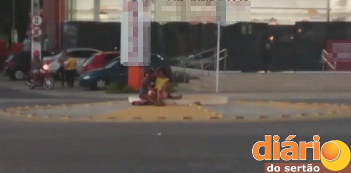 O casal não se incomodou com os motoristas que passavam no local e criticava os “amantes”