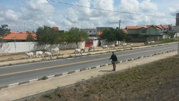 PRF recolhe 26 animais soltos na rodovia e prende o proprietário na Paraíba