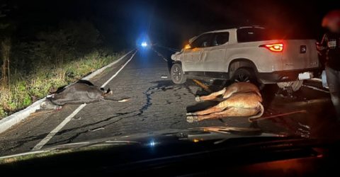 O motorista compareceu à DP e registrou um BO. Ele informou que seu carro ficou bastante danificado e que até então não se sabe quem é o dono dos animais