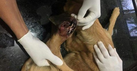 O animal foi encontrado ferido na manhã desta segunda-feira por moradores, que ficaram revoltados com a ação criminosa na cidade sertaneja.