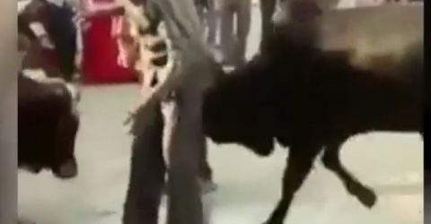 Obviamente, os animais não entendem porque aquela pessoa interveio no caso e começam a chifrá-lo