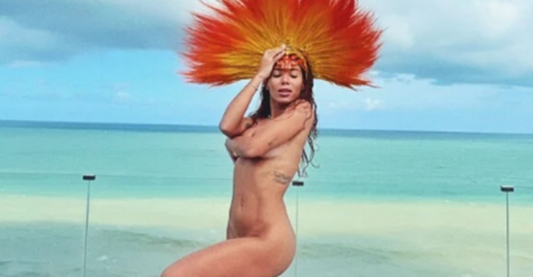 Anitta aparece sem roupa na varanda de um hotel, com o mar de Natal ao fundo