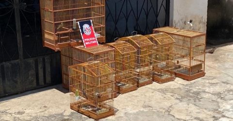 Segundo os policiais, rondas estavam sendo efetuadas no município quando a guarnição avistou, na parte externa de uma residência, algumas gaiolas contendo aves silvestres.