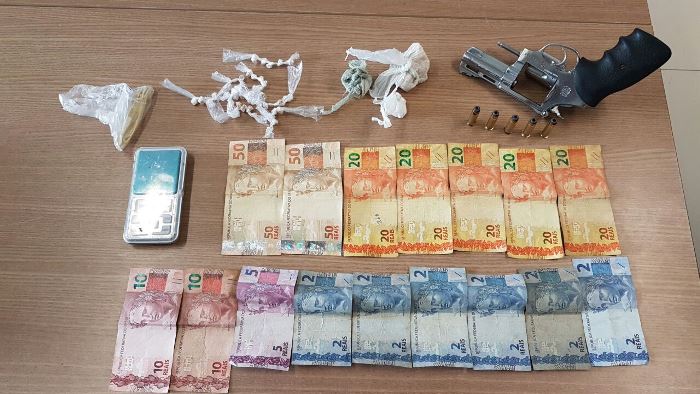Com os jovens foi encontrado um simulacro de pistola, cocaína, uma balança de precisão, além de objetos que podem ter sido trocados por entorpecentes.