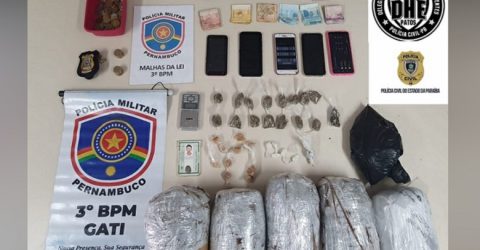 Uma grande quantidade de drogas, dinheiro em espécie, celulares e vários apetrechos do tráfico, foram encontrados em posse dos meliantes