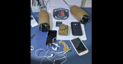 Policiais apreendem celulares, droga e cachaça, arremessados para dentro do presídio de Sousa