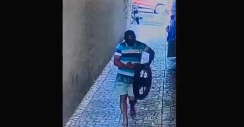 VÍDEO: Em plena luz do dia, homem furta roda de moto no centro de Patos e sai caminhando tranquilamente