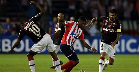 Atlético-PR sai na frente com Pablo; Junior Barranquilla empata logo depois, mas desperdiça uma cobrança de pênalti. Atacante Marcelo Cirino fala em "sorte de campeão"