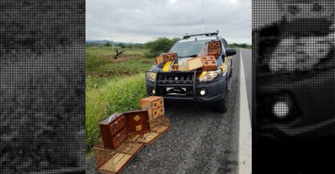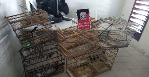 Policiais faziam uma ronda corriqueira pelo Bairro dos Pereiros quando avistaram as gaiolas em uma residência. As aves foram apreendidas e e um homem foi detido
