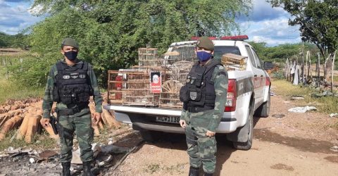 VÍDEO: Polícia Ambiental apreende dezenas de aves e um tatu em cativeiros nas regiões de Sousa e Cajazeiras