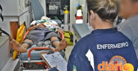 Equipes do SAMU foram acionadas e estiveram no local socorrendo a vítima que foi encaminhada ao Hospital