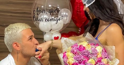 O artista, tem 23 anos e pediu a mão da sua namorada, Beatriz Michelle que é influenciadora, em casamento neste domingo (22)