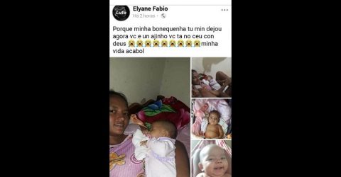 Na postagem, Elyane Fábio escreve que agora a sua filha é um anjinho que está no céu