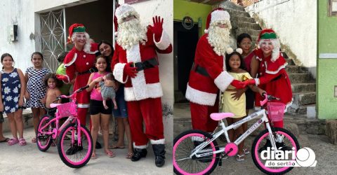 A ação é uma iniciativa do Lojão Rio do Peixe e da TV Diário do Sertão e está presenteando crianças do Alto Sertão com uma bicicleta Colli novinha