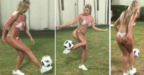 Nas imagens, ela aparece vestida com um biquíni e tênis, exibindo a boa forma. Assista abaixo a perfomance da loira.