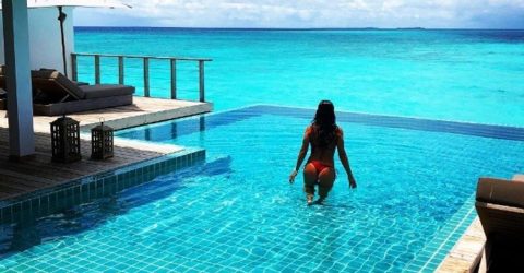 De férias da televisão, a atriz está passando alguns dias nas Ilhas Maldivas