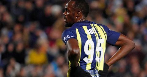 Estreia de Bolt no futebol tem canelada e até chance de gol perdida
