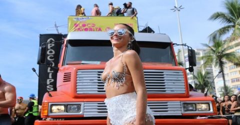 Atriz vestiu um sutiã de pedrarias que cobria parcialmente seus seios