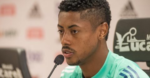 Atacante concedeu entrevista coletiva no Ninho do Urubu