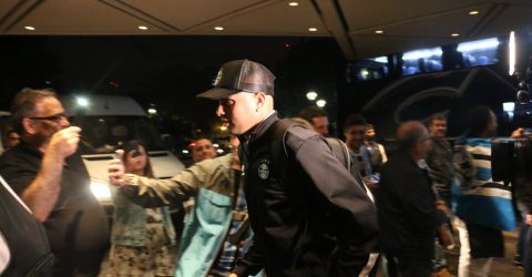 Camisa 7 é recebido com aplausos no hotel da delegação gremista em Buenos Aires