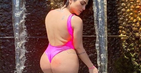 Atriz deixou o bumbum em evidência em clique no Instagram e ainda falou sobre sua mudança de peso: “amando minha bunda grande”